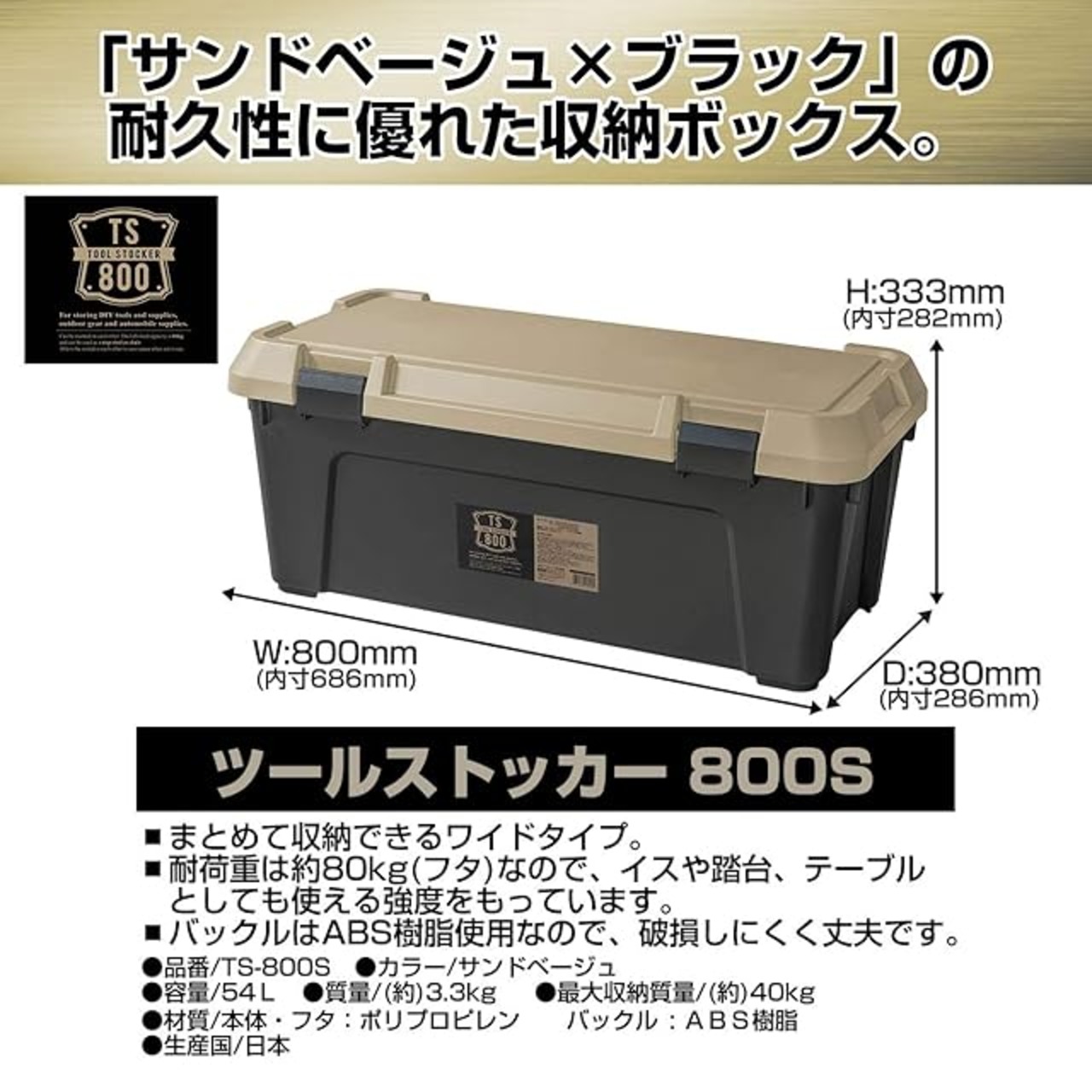 JEJアステージ(JEJ Astage) 収納ボックス 日本製 アウトドア キャンプ 踏台 耐荷重80kg 車載 積み重ね [Sシリーズ ツールストッカー800S] サンドベージュ 防災 幅80×奥行38×高さ33cm | emishop315