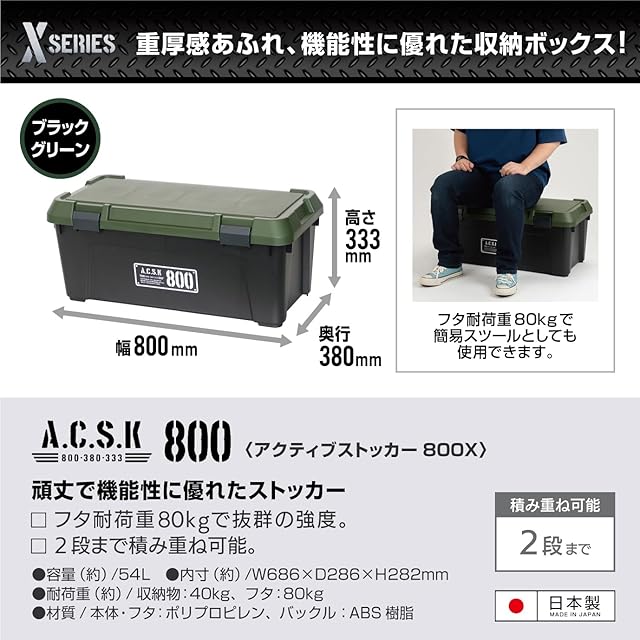 JEJアステージ(JEJ Astage) 収納ボックス 日本製 アウトドア キャンプ 踏台 耐荷重80kg 車載 積み重ね [Xシリーズ アクティブストッカー800X] 防災 幅80×奥行38×高さ33cm | emishop315