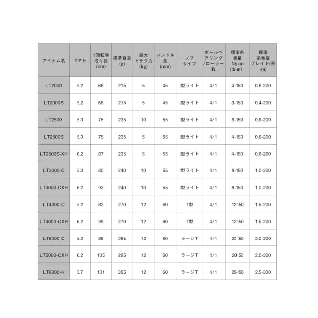 標準糸巻量:ナイロン(lb-m) 20-150 / ブレイド(号-m) 2.0-300