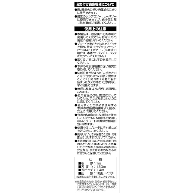 商品名:高儀(Takagi) EARTH MAN 電気のこぎり・充電式のこぎり用 鉄工用替刃 130mm DNP-3