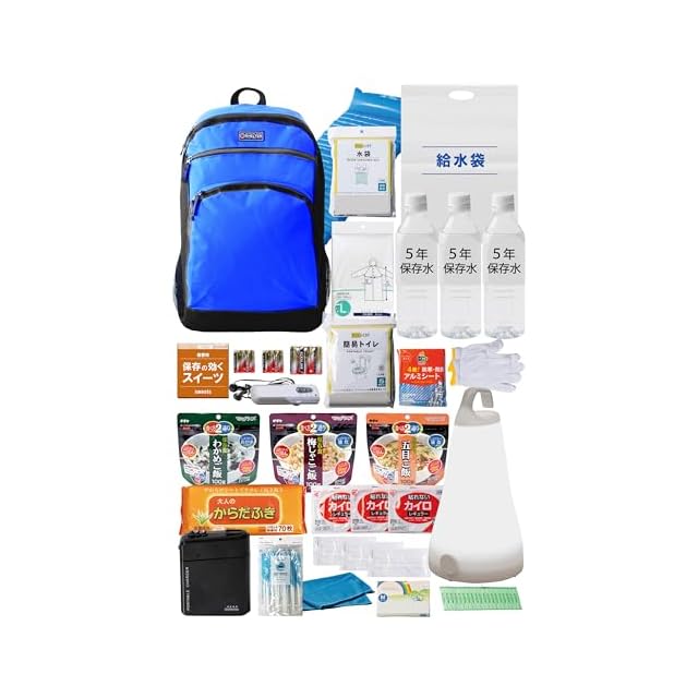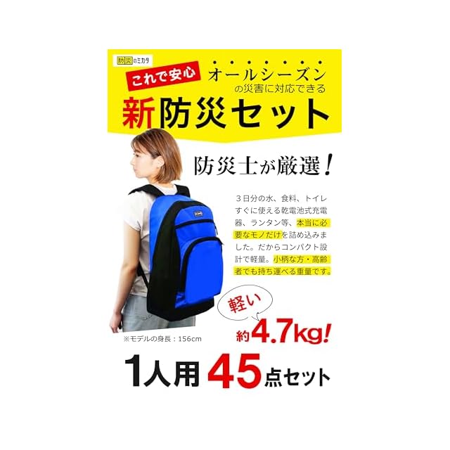 商品名:防災のミカタ グッズ セット リュック 1人用 45点 青 非常用リュック 【日本防災ブランド】 大容量リュック 非常用 簡易 トイレ 保存食 保存水