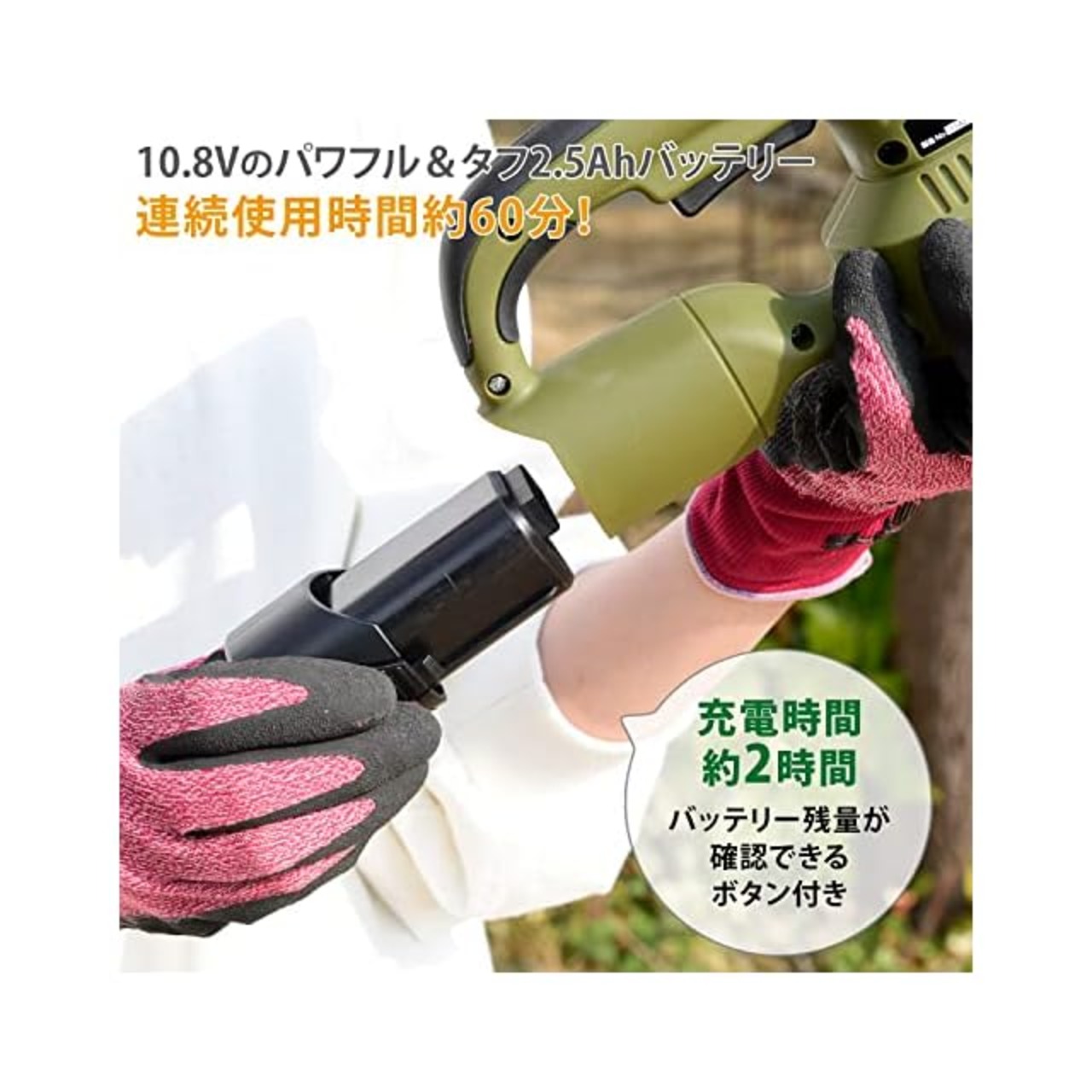 山善(YAMAZEN) 10.8V コードレス芝生バリカン 充電式 2.5Ah 刈込高3段階調節 コードレス ハンディ コンパクト 軽量 電気式 芝生 草 グラス バリカン 芝刈機 YDG-160 カーキ | emishop315