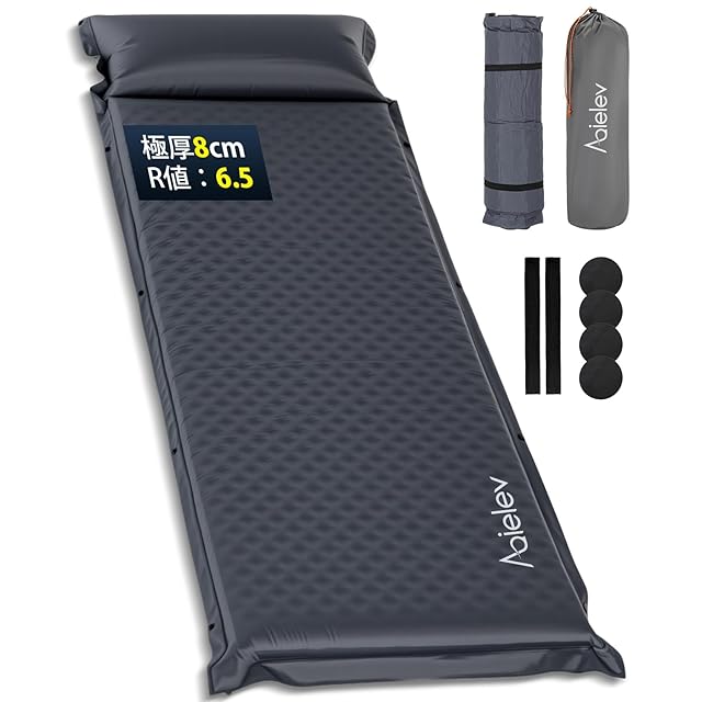 エアーマット キャンプマット【2025 30s膨らむ・8CM厚さ】 高弾性スポンジ お花見に 無限連結可能 枕付き R値6.5 エアマット 超軽量 折り畳みコンパクト 防災/テント/車中泊 防水防潮 持ち運び便利 収納袋付き/日本語説明書/ ゴムバンド2本/ 補修用シール4枚付き