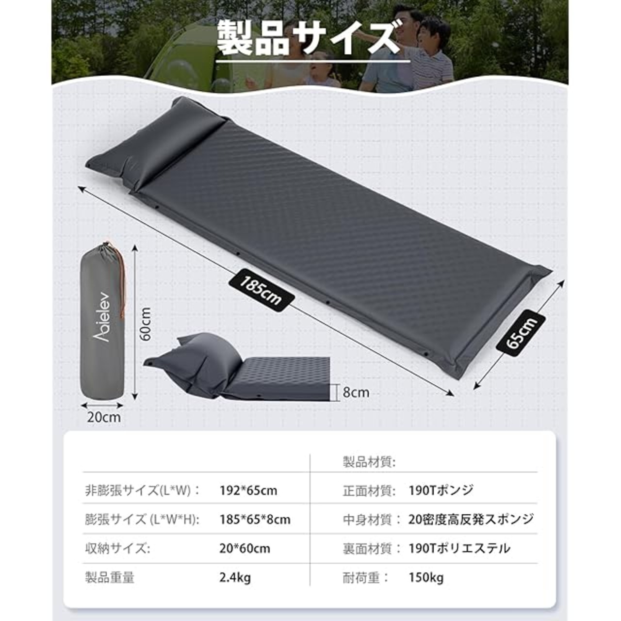 商品名:エアーマット キャンプマット【2025新開発・30秒で膨らむ・R値6.5】厚手8cm 車中泊マット枕付き インフレーターマット 高弾性 コンパクト 無限連結可能 折り畳み式 マットレス 収納袋付き/日本語説明書/ ゴムバンド2本/ 補修用シール4枚付き /来客用/防災用/家庭用/アウトドア エアーベッド