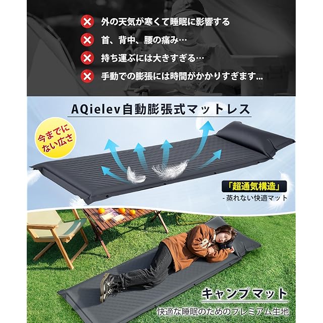 【厚さ8cmR値6.5内蔵の快適枕】米国最先端の工場と協力して製造された超厚型エアパッド。サイズ:200×70×8cm。車内の高低差や地面の振動を軽減します!さらに、人間工学に基づいた設計のエア枕が、首と頸椎の自然な形状を維持し、深い睡眠をサポート。自然環境下でも快適な睡眠をします。[通気性構造保温防湿] キャンプマットは四季を通じて使用可能 春季:適度な通気性で、蒸れにくい。夏季:接触冷感処理で、涼しく快適。秋:適度な保温性で朝の風邪を予防。冬:-20℃の極寒にも対応する特殊保温機能。