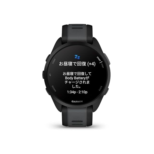 【決済機能】手ぶらで走りに行っても、Suica機能搭載でスマートに支払い。【健康管理機能】睡眠スコア測定やストレスモニタリング、BodyBattery機能で一日の体力を可視化します。