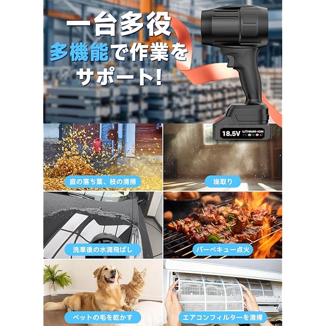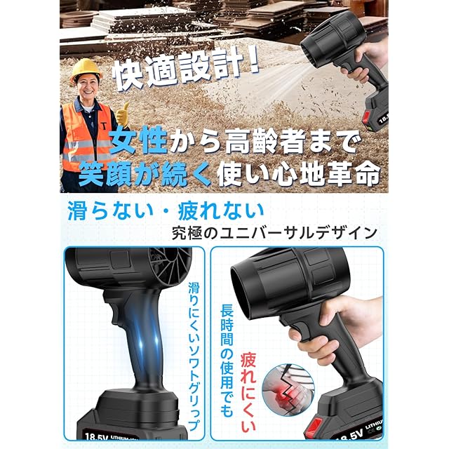 【2025年新型モデル】コードレスブロワー 組立不要、軽量化、ターボチャージャー搭載により、風速がより速く・強く・効率的になり、落ち葉や積雪の除去に最適です。 ※ご注意:最適な使用距離は2メートル未満です。これを超えると風力が弱まり、対象物を動かす効果が低下する可能性がございます。また、強力な風量のため、使用中は大きな騒音が発生する場合がございますので、耳栓を持って行ったほうがいいですよ。