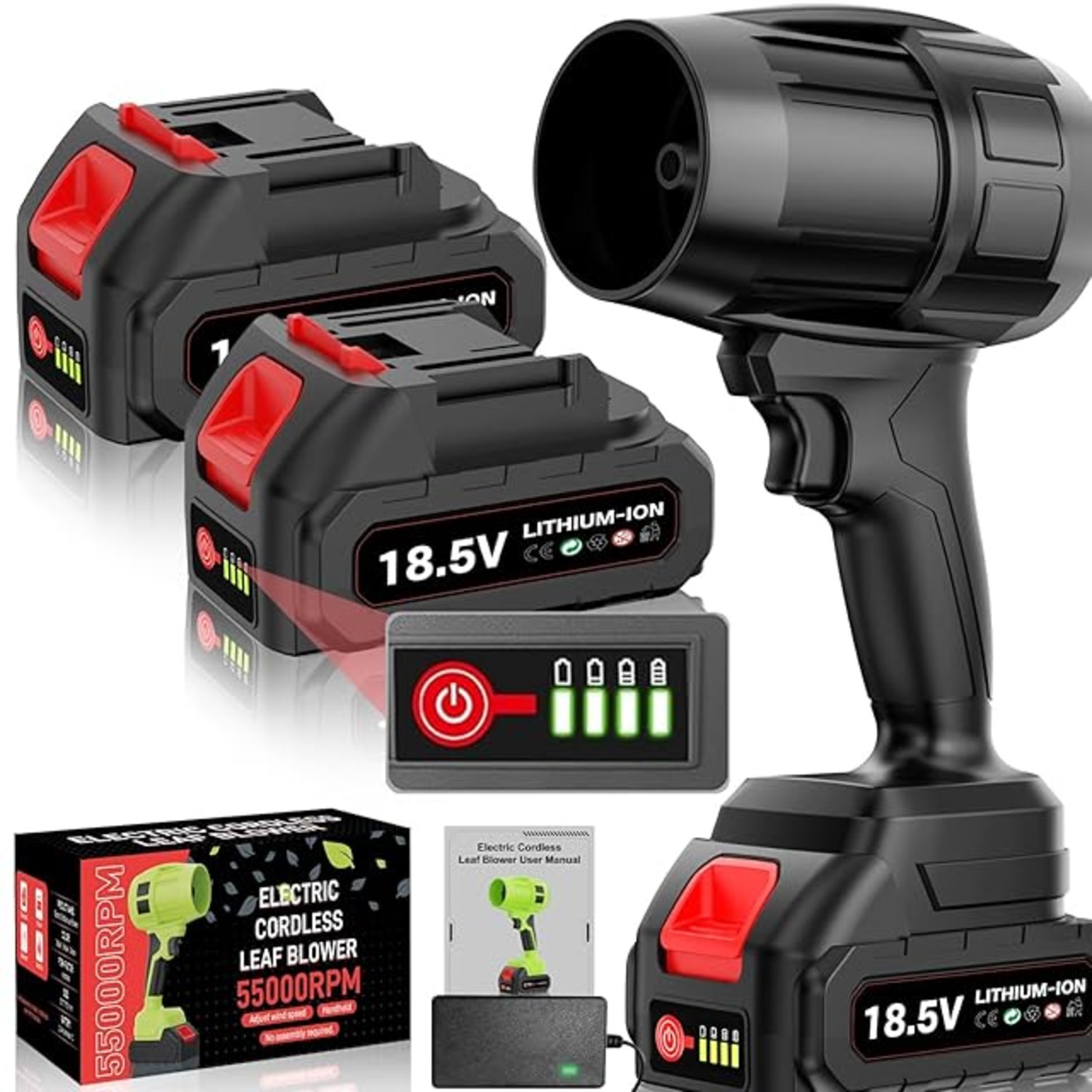 ブロワー 強力 洗車【新昇級版モデル 】PSE認定 残量表示 バッテリー 2個搭載 55000RPM マキタ電池互換 高速回転 無段階変速 軽量 コードレス ブロワー 80m/s大風速 最強 強力 耐久性 12枚大ファンブレードターボブロワー 高温耐性 小型 庭掃除/落ち葉/洗車/キーボード/パソコン/エアコン/網戸/除雪/フィギュア/バーベキュー 日本語説明書付き
