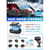 【18.5V * 2 バッテリー】 コードレスブロワー 18.5V * 2個の大容量リチウムイオンバッテリーを搭載しており、屋外での使用時も電源切れの心配がございません。マキタ製複数モデルのバッテリーに対応しており、マキタ製バッテリーを併用いただくとさらなる高性能を発揮します。 ※ご注意:風力が弱まった場合は、バッテリーの残量を確認の上、充電済みのバッテリーと交換してください。