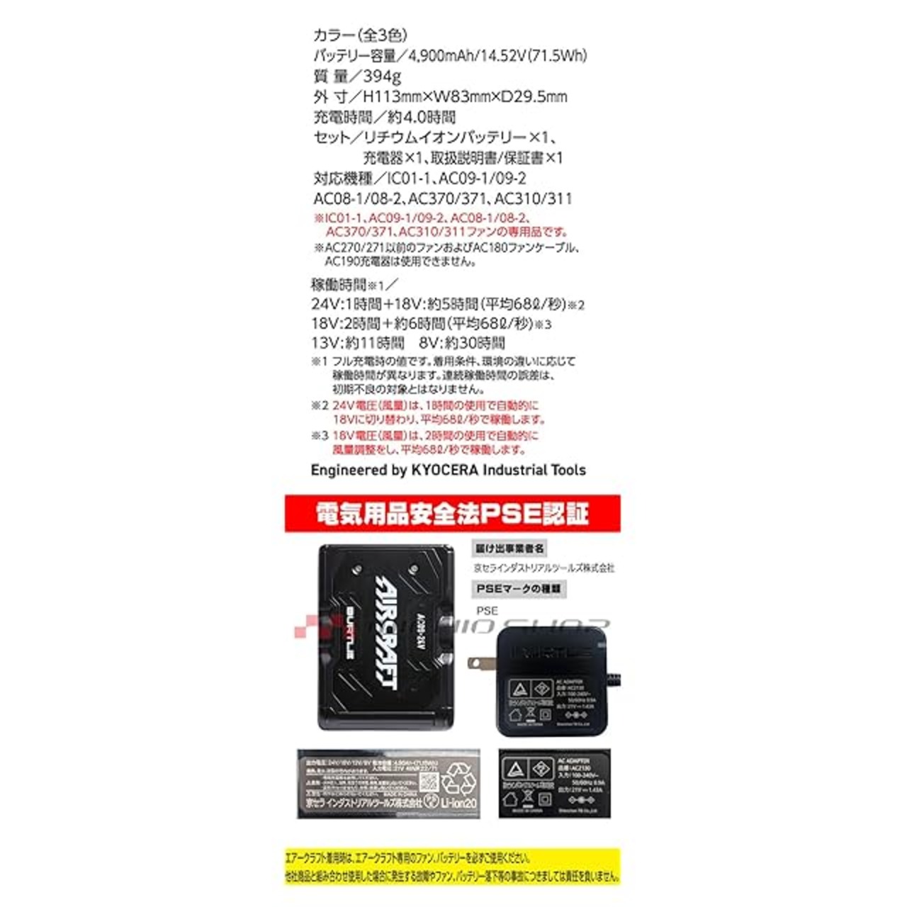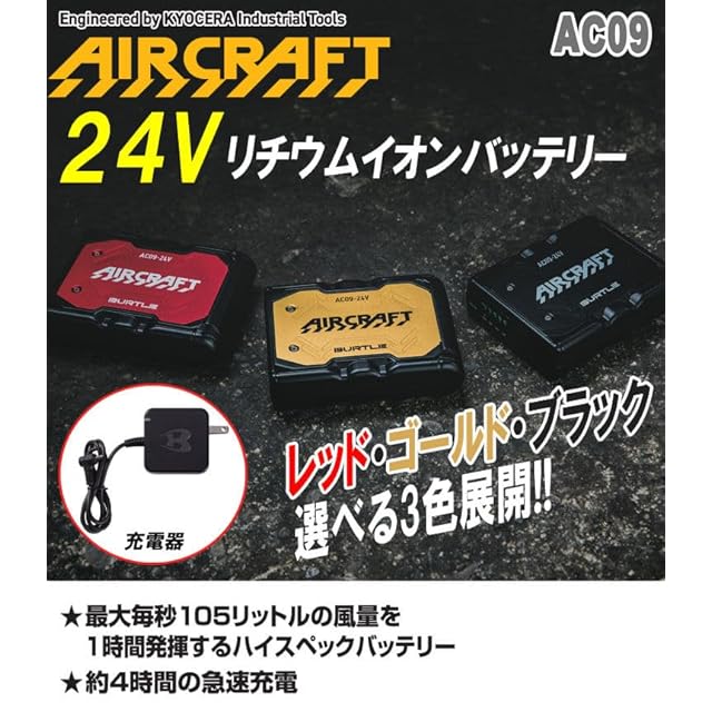 商品名:[バートル] 24Vリチウムイオンバッテリー AC09 エアークラフト AIRCRAFT 京セラ製 2025年モデル 96メタリックレッド