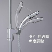 【好きな角度に調整可能】上下左右好きな角度に調整できます。シャワーホルダーは無段階可動。レバーを握って高さと左右の調整が可能です。いつでもお好みの位置でシャワーを浴びられます。