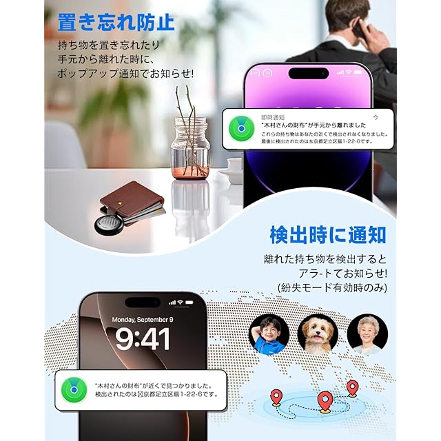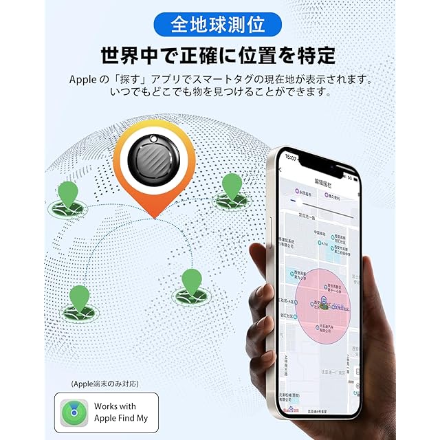 【全地球精確な測位&無制限の高精度】Appleの圧倒的な「探す」ネットワークを活用し、日本国内はもちろん海外旅行中でもリアルタイム位置情報を把握可能。追加アプリのダウンロードや面倒な設定は一切不要。iPhone、iPad、Macデバイスの「探す」ネットワークを利用して、AirTagの現在地が地図上にピンポイント表示されます。紛失防止タグは距離を問わず世界的に正確に位置を探し出します。