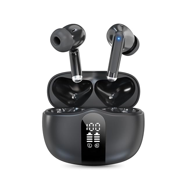 【2025新開発音質重視モデル ・中高低音バランスが良く】イヤホン bluetooth ワイヤレスイヤホン ブルートゥース イヤフォン Bluetooth5.4 LEDディスプレイ ダブル マイク ENCノイズキャンセリング Hi-Fi音質 ハンズフリー通話 ぶるーとぅーす カルナ型 35時間音楽再生 iPhone/Android 適用 通勤通学/スポーツ/ゲーム (frosted black) | emishop315