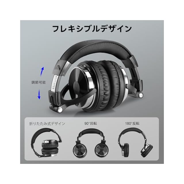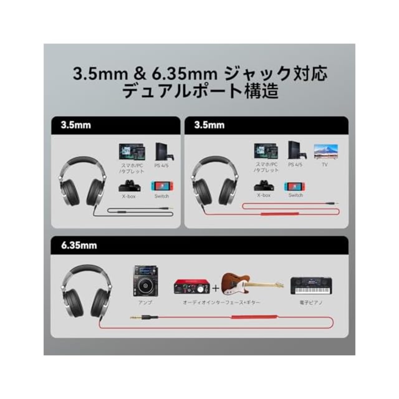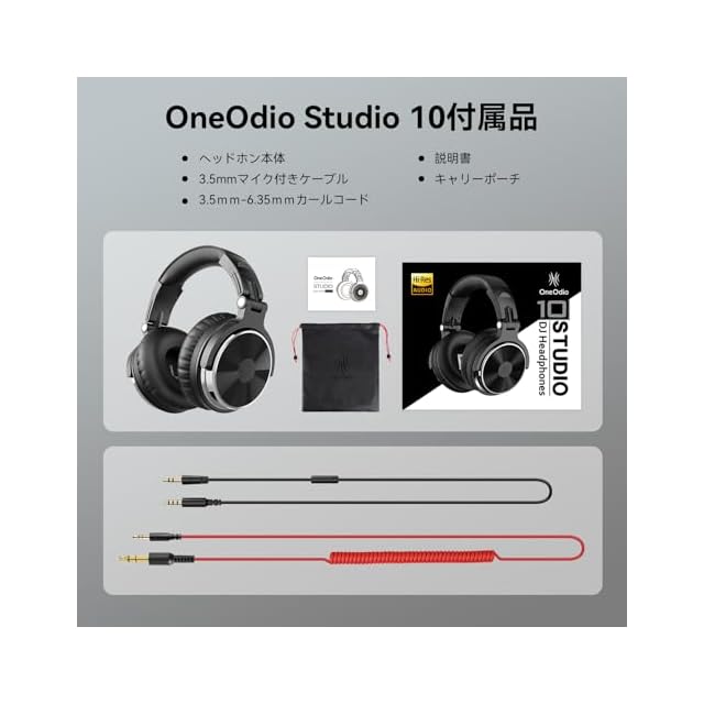 商品名:OneOdio Pro10 スタジオモニターヘッドホン 有線 50mm ドライバー 3.5mm/6.35mm両対応 ハイレゾヘッドフォン 音楽制作/DJ/楽器練習用 折りたたみ式 マイク付属 ケーブル2本付き