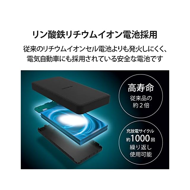 リン酸鉄リチウムイオンセル電池は従来のリチウムイオンセル電池の約2倍の長寿命(約1000サイクル)の電池となっています。
