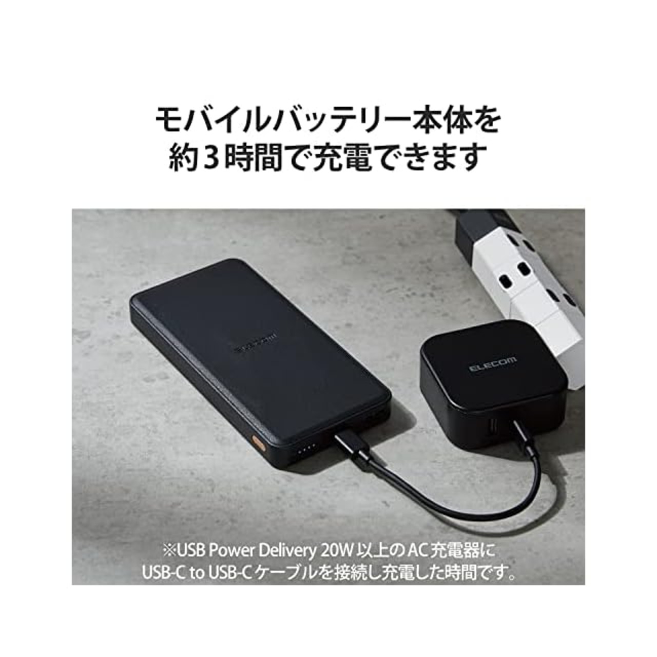 商品名:エレコム モバイルバッテリー 大容量 急速充電 12000mAh USB PD対応 20W リン酸鉄 2台同時充電 出力2ポート (Type-C/USB-A) 入力(Type-C) 【 iPhone 16 15 14 iPad/Android 各種対応】 ブラック DE-C39-12000BK