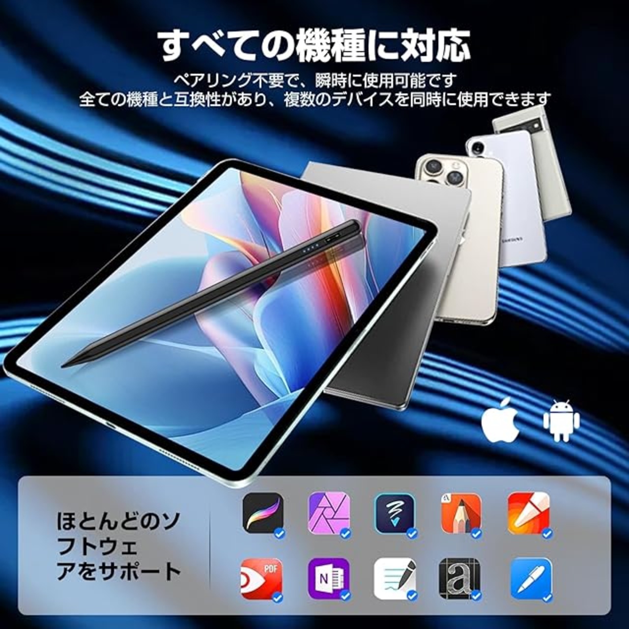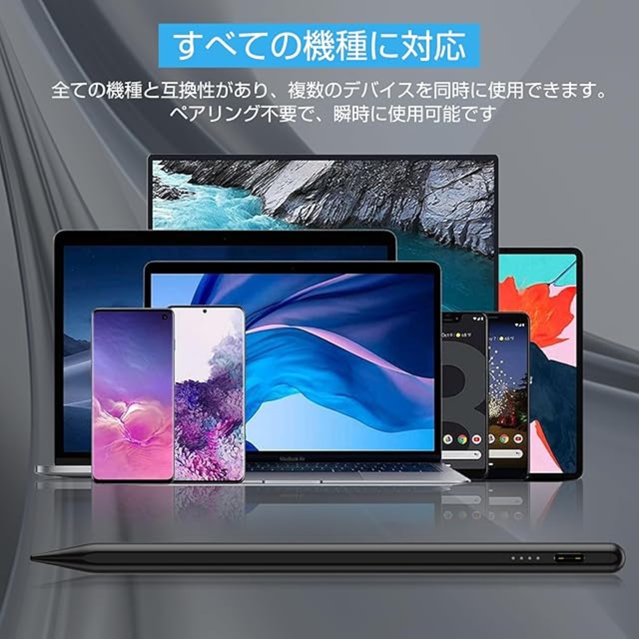 【高性能技術チップ搭載 ipad ペン】急速充電、充電20分でフル充電。長時間使用可能で、6?8時間の連続使用が可能です。遅延のない高感度でスムーズに操作が可能です. 5分応答がない場合、自動で電源が切れる省エネ機能も搭載。タブレット ペン android USB C充電式、 4つのLEDライトが搭載されており、バッテリー残量を簡単に確認できます。