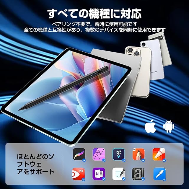【2025・超高精度スタイラスペンの多機種対応】binoa スマホ ペン、全ての機種と互換性があり、複数のデバイスを同時に使用できます。ペアリング不要で、瞬時に使用可能です超精密センサー、まさに遅延ゼロ、切断ゼロ 。 (Pad/Phone/Android/スマートフォン/タブレット用の鉛筆)また、接続やペアリングは不要です。 スイッチをダブルクリックしてすぐに書き込みます。【ご注意:新しい製品を使用する前に、製品に十分な力があることを確認してください。電力が低い場合は、適時に充電してください。】