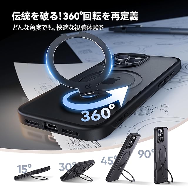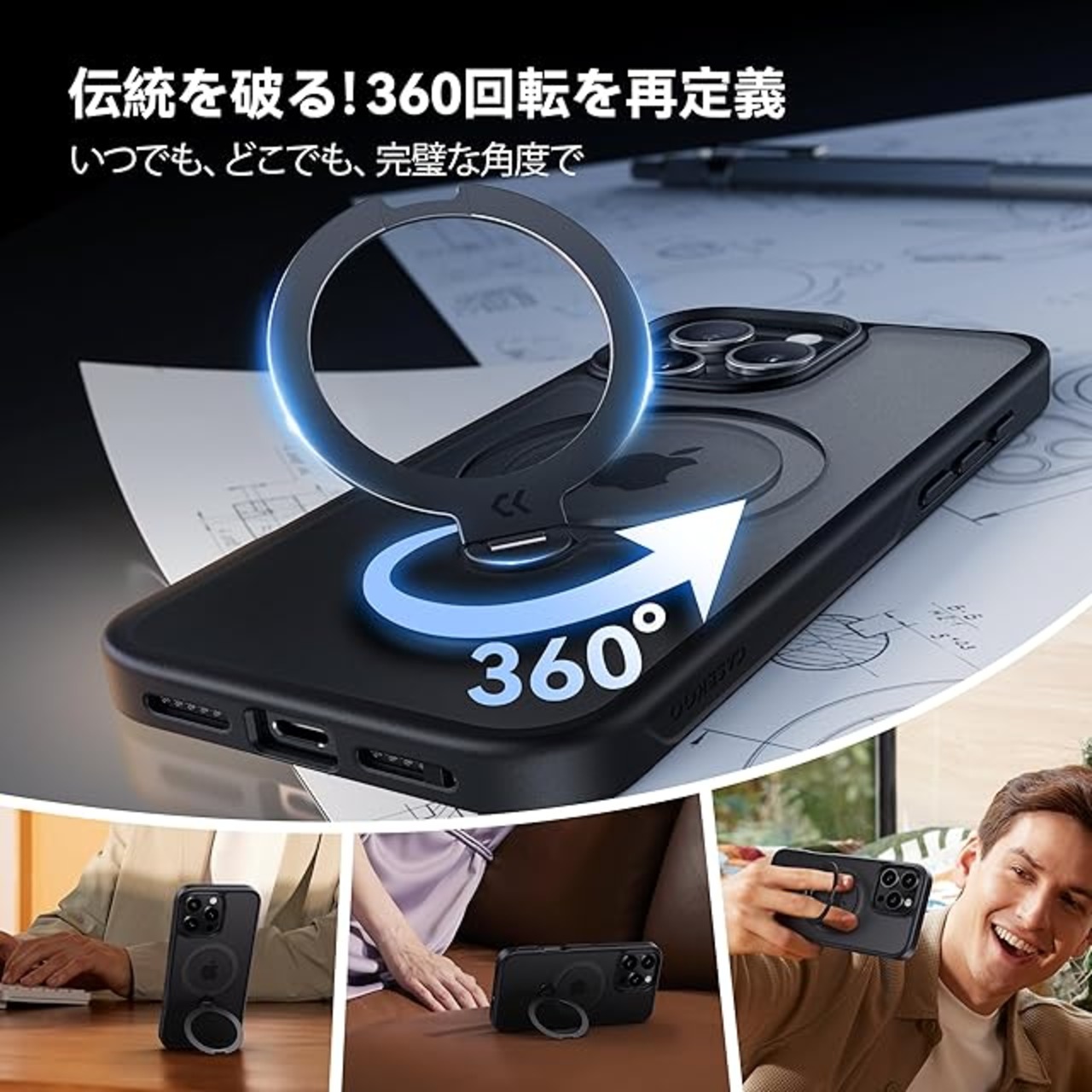 商品名:【2025最高傑作&定点360度回転】CASEKOO iPhone 16 Pro 用 ケース 米軍MIL規格 耐衝撃 MagSafe対応 高耐久性【横縦両立・角度自由調整】最大25W急速充電対応 指紋防止/マット仕上げ/黄変防止/半透明 ラップホール付き ワイヤレス充電対応 いphone16pro 用ケース 6.3インチ「MagicStand Pro」(ブラック)