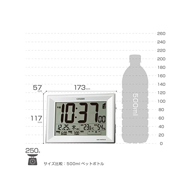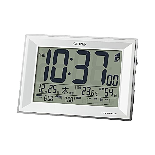 商品名:リズム(RHYTHM) シチズン 目覚まし時計 電波時計 温度計・湿度計付き 白 117x173x57mm CITIZEN パルデジットワイドDL 8RZ151-003