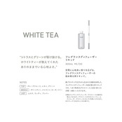 【内容量】300mL【香りの持続時間】専用のフレグランスディフューザーグラスのご使用で2回分(約3カ月間)お使いいただけます。※フレグランスディフューザースティック10本が付属しています。【香調】TOP:グレープフルーツ、レモン、グレーン。MIDDLE:グレーンティー、ジャスミン、ローズ、リリー。LAST:ムスク、ウッディ、アンバー。【成分】エタノール、香料、溶剤