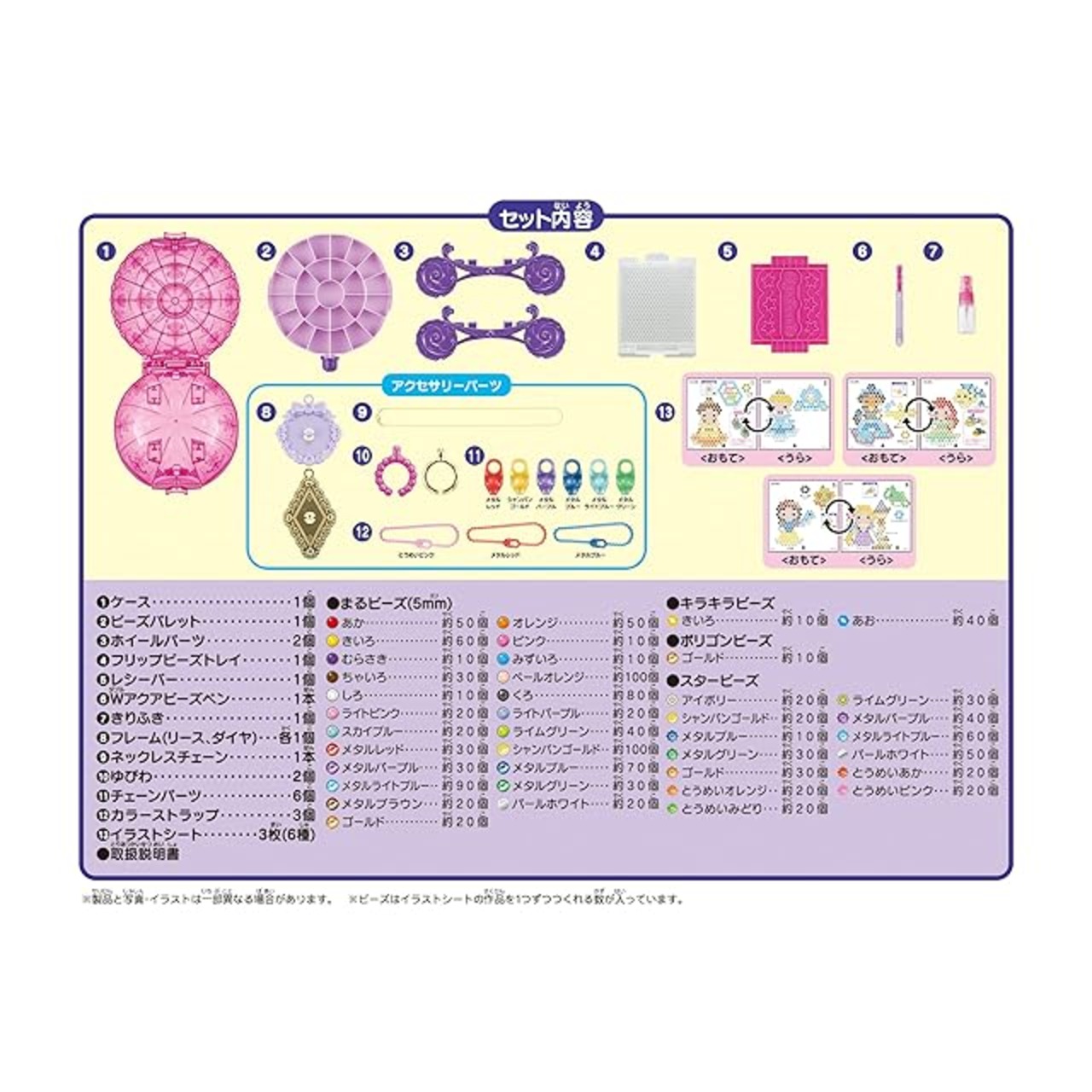 ディズニープリンセスモチーフの作品がいっぱいつくれる、フリップビーズトレイとWアクアビーズペンつきのオールインワンセットです。