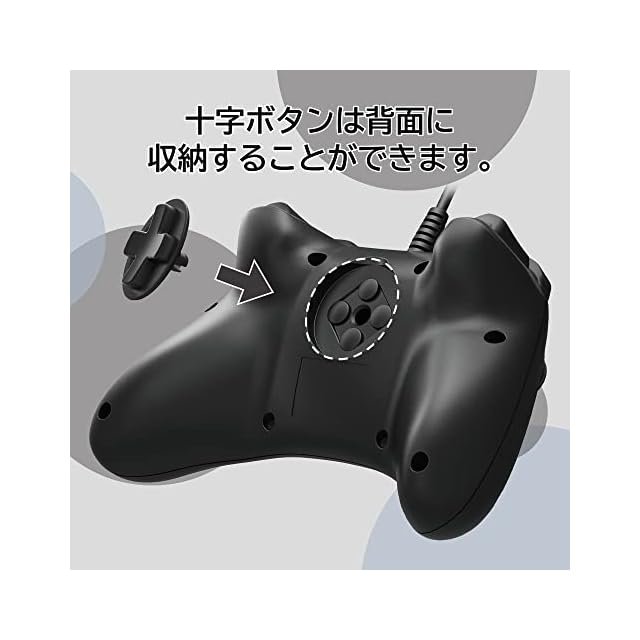 十字ボタンの付け外しができ、十字ボタンと方向ボタンの両方で遊ぶことができます。取り外した十字ボタンは製品背面に収納することができます。