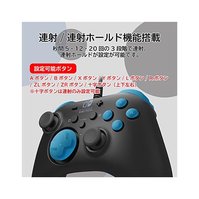 連射/連射ホールド機能搭載。毎秒5回/12回/20回の速度調節が可能です。