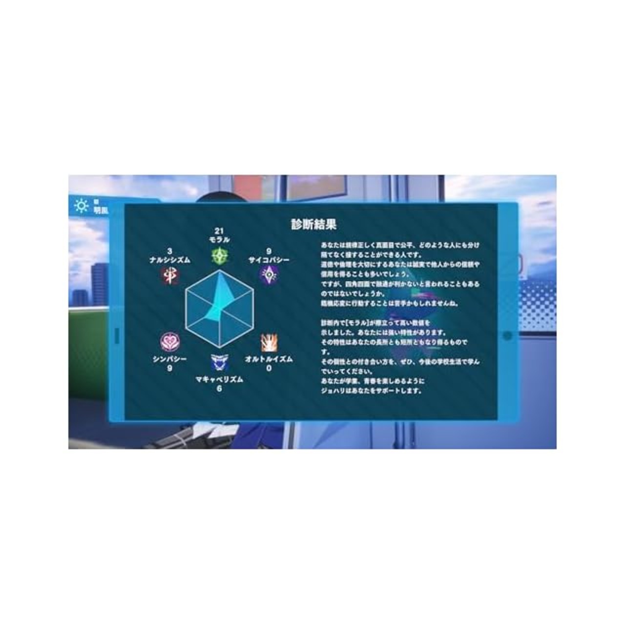 ゲーム内の診断や選択肢により6つのパラメータが変化。会話の選択肢が増えたり、バトルスキルが強化される