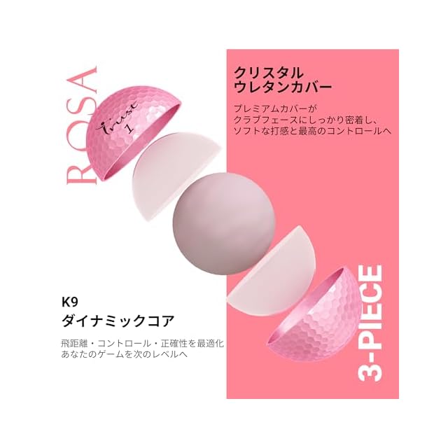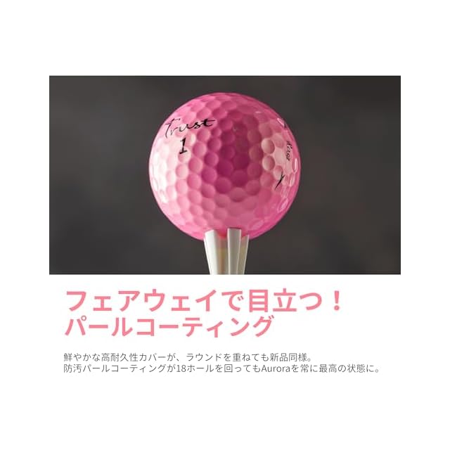 商品名:TrustトラストゴルフボールNew Rosa(ローサ) 被らない 目立つ 飛ぶ 曲がらない 止まる 柔らかい打感 ウレタンカバー3ピースダイナミックコア 1ダース(12個入り)ゴールドピンク