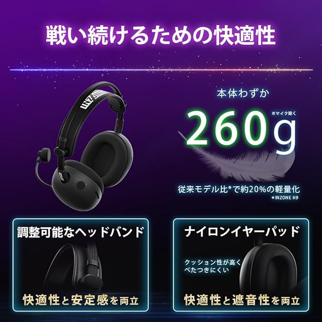 ソニー(SONY) ゲーミングヘッドセット INZONE H9 Ⅱブラック: WH-G910N:Fnatic共同開発 ワイヤレス/Bluetooth/ノイキャン搭載/立体音響/低遅延/長時間使用しても疲れづらい/ブームマイク付き/ブラック | emishop315