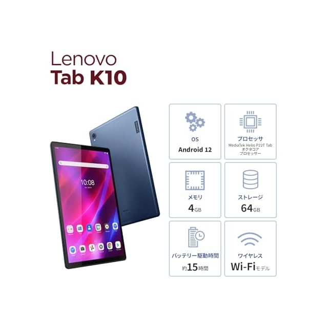 商品名:Lenovo タブレット 10.3インチ 【MediaTek Helio P22T / 4GB / 64GB】Android 12 Wi-Fiモデル Tab K10 ZA8N0081JP