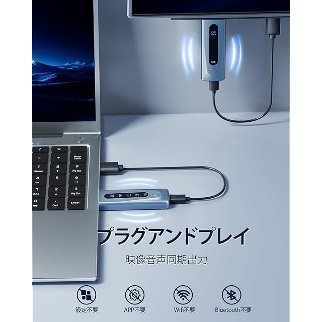 商品名:hdmi 無線 ワイヤレス hdmi 送受信機セット 0.03秒超低遅延「1080P/5G+2.4G/100m安定転送/日本技適認証取得」小型 挿すだけで使える WIFI&設定不要 映像音声同期出力 LEDディスプレイ搭載 8台増設可能 収納に便利 テレビ/PC/Mac/Laptop/Window/カメラなど対応 (blue)