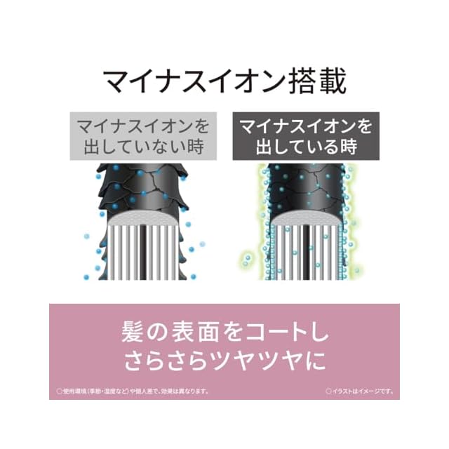 マイナスイオンが髪の表面をやさしくコートし、さらさらツヤツヤにスタイリング