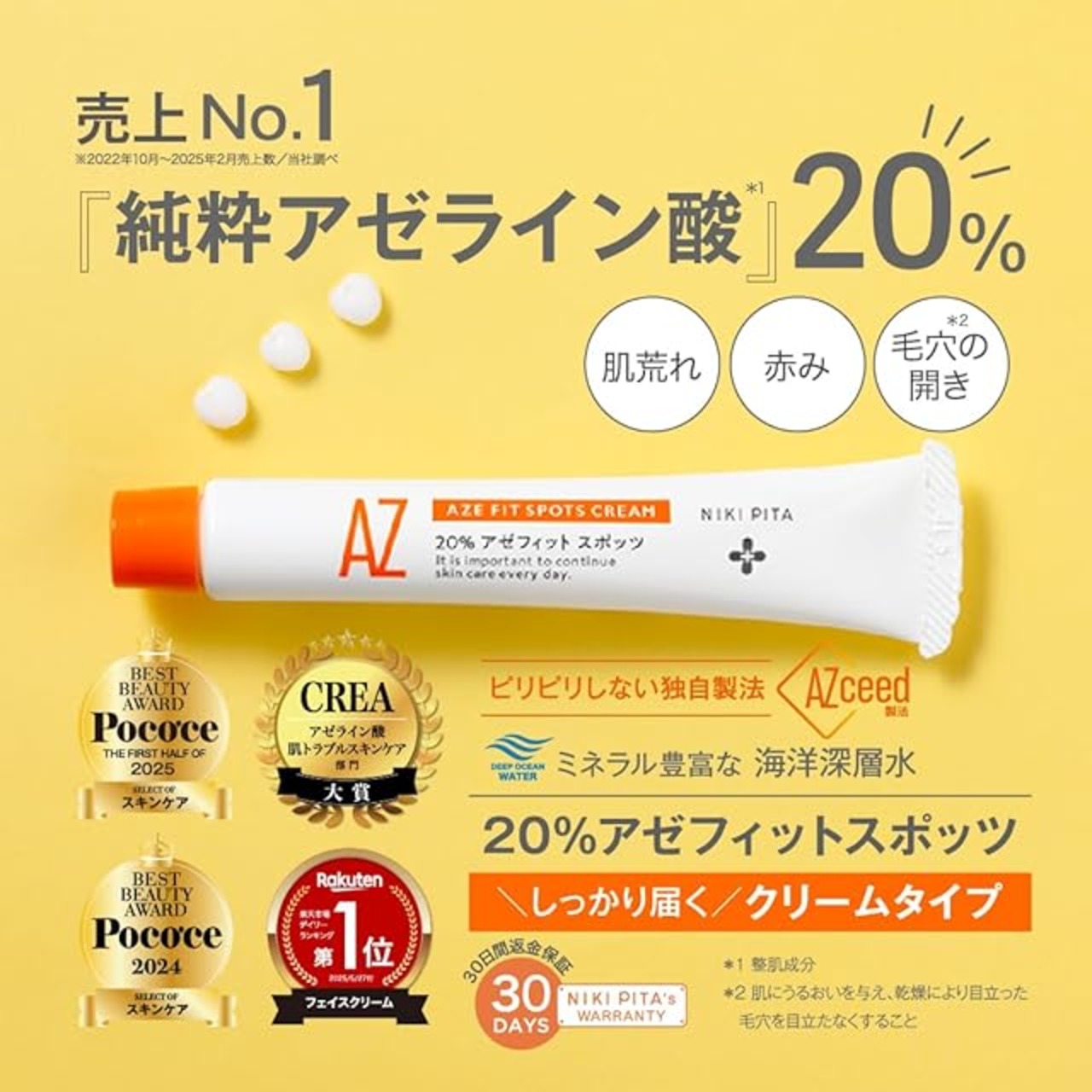 ニキピタ アゼライン酸20%クリーム 20%アゼフィットスポッツ サリチル酸 グリチルリチン酸ジカリウム コラーゲン ヒアルロン酸 NIKIPITA