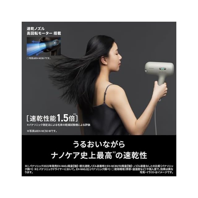 髪へのうるおいは1.2倍※(毛髪水分増加量・当社高浸透ナノイー搭載商品比。2022年発売EH-NA0Jとの比較・当社調べ)