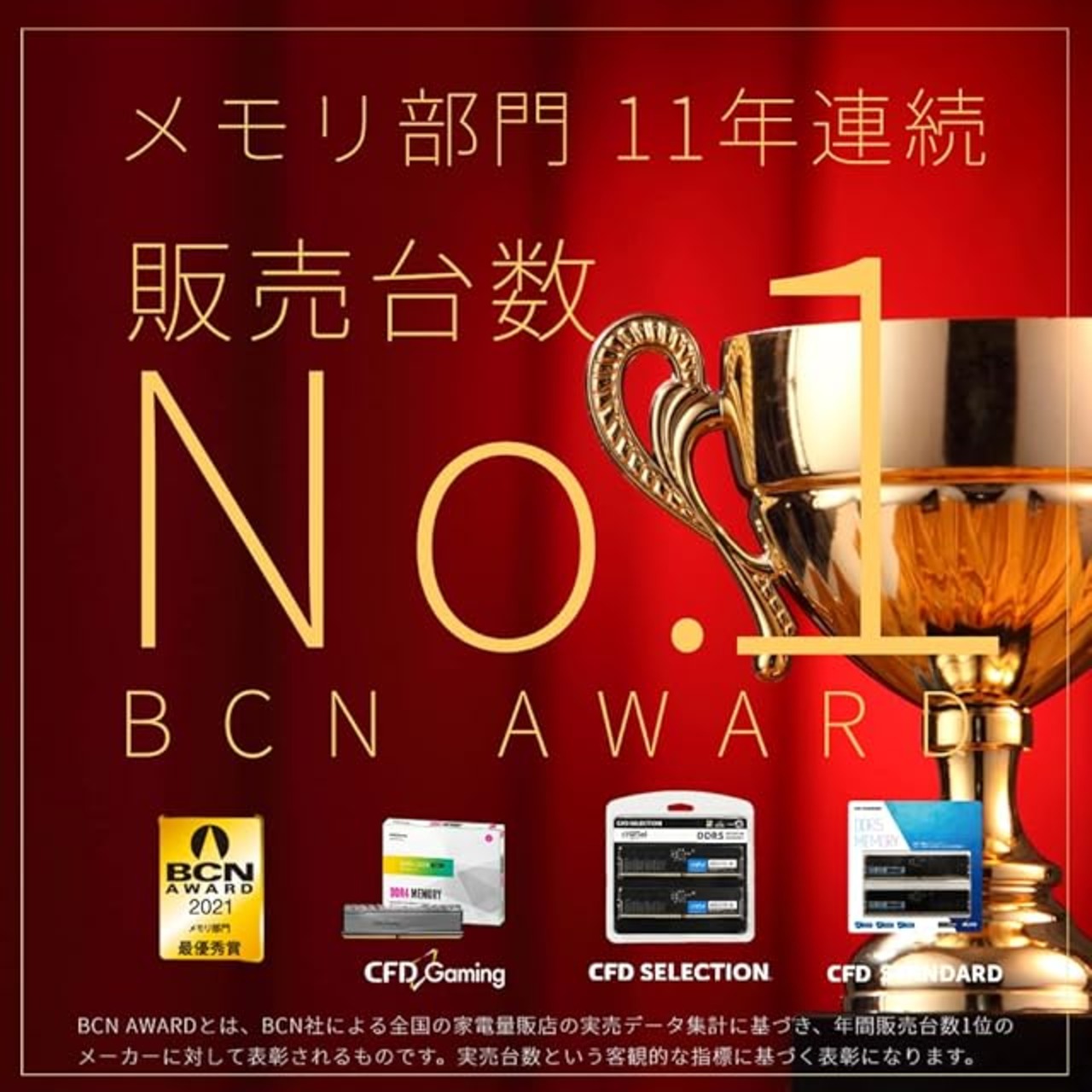 商品名:シー・エフ・デー販売 CFD Standard デスクトップ用 メモリ DDR4 2666 (PC4-21300) 16GB×1枚 288pin DIMM 相性 D4U2666CS-16G