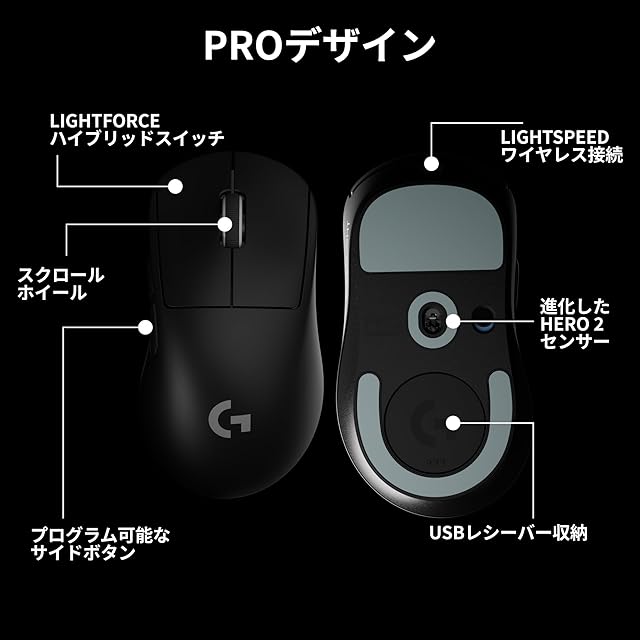 Logicool G 8000Hz ポーリングレート PRO X SUPERLIGHT 2 DEX 44K DPI ワイヤレス ゲーミングマウス GPROXSL-WLDEXBK エルゴノミクス 右手 軽量 60g LIGHTFORCE ハイブリッドスイッチ LIGHTSPEED USB Type-C 充電 POWERPLAY 対応 ゲーミング マウス 無線 windows ブラック 国内正規品 | emishop315