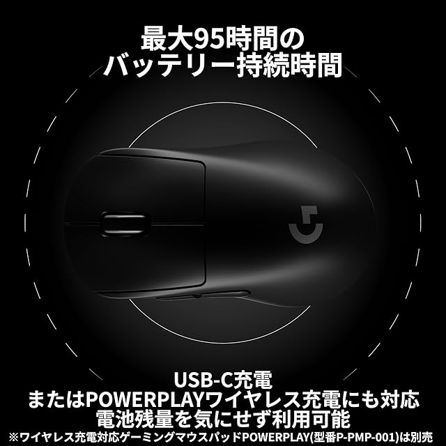 改善された電力効率/約1時間のフル充電で、約95時間の連続使用と省エネ性能を実現/プレイしながらのワイヤレス充電が可能な「POWERPLAYワイヤレス充電システム」にも対応、電池残量を気にせず利用できます ※POWERPLAY(G-PMP-001)は別売です