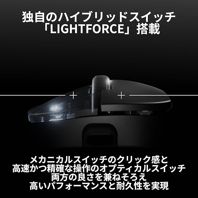 ロジクールG独自のハイブリッドスイッチ「LIGHTFORCE」を搭載/メカニカルスイッチのクリック感と高速かつ精確な操作のオプティカルスイッチ、両方の良さを取り入れたハイブリッドスイッチ/高いゲーミングパフォーマンスと耐久性を実現