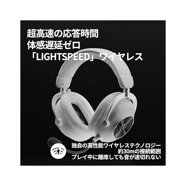 【 LIGHTSPEED ワイヤレス 】無線による信号遅延や干渉を感じさせない、ワイヤレステクノロジー LIGHTSPEED 搭載。一度の充電で最長50時間使用でき、最長30mの安定したワイヤレス接続範囲を提供するプロ仕様のワイヤレス。