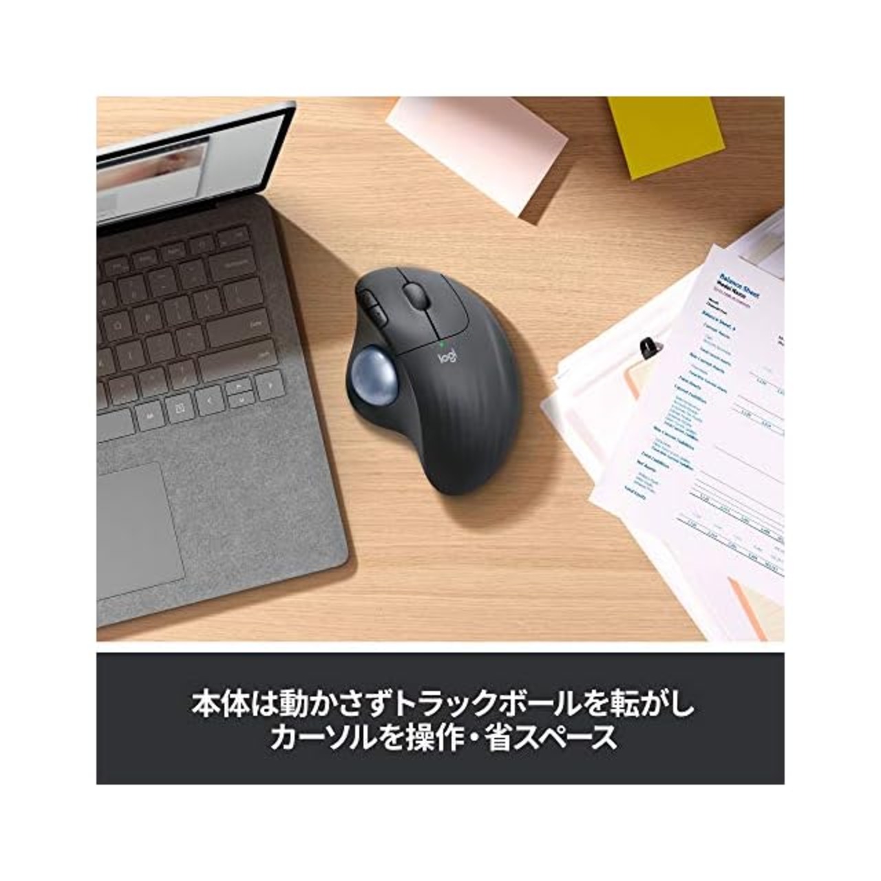 マウスの位置は固定したまま本体のボールを転がしてカーソル操作 ロジクール定番のトラックボールマウス!