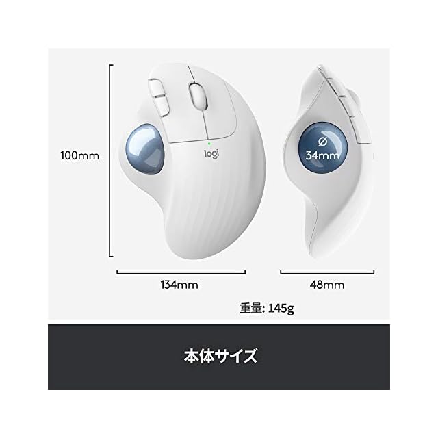 商品名:ロジクール ワイヤレスマウス トラックボール 無線 M575OW Bluetooth Unifying 5ボタン windows mac iPad 電池寿命最大24ケ月 M575 オフホワイト 国内正規品