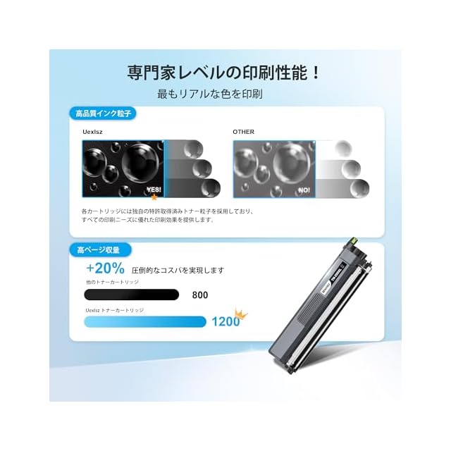 【高安定性】不具合率は2%以下。純正トナーの不具合率0.5〜2%に比べ互換トナーの不具合率は3〜5%。純正品、互換品にかかわらず、弊店はお客様が喜び満足していただけるよう、より良い商品をお手元に届け、サービスをより良く、より丁寧にしていく努力を重ね、精進してまいります。
