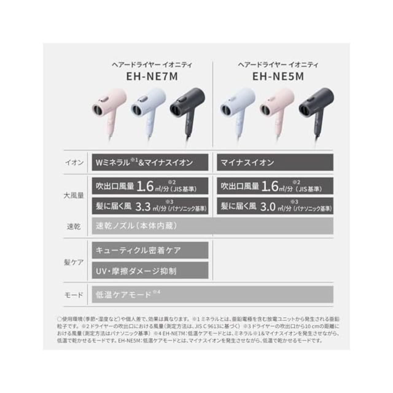 速乾・大風量でパワフルドライ。髪をいたわる低温ケアモード(※低温ケアモードとは、マイナスイオンを発生させながら、低温で乾かせるモードです。※)搭載。