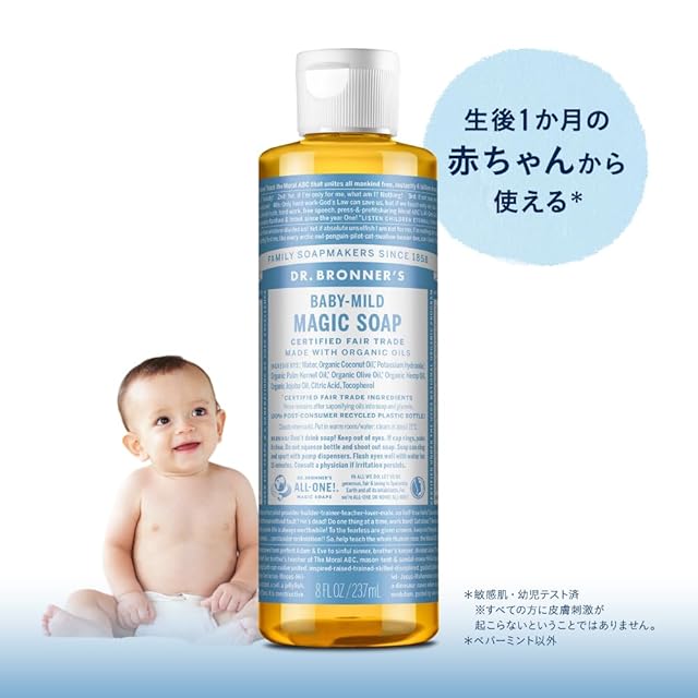 商品名:ドクターブロナー マジックソープ BA(ベビーマイルド) 237ml 無香料 植物オイル マルチオーガニックソープ