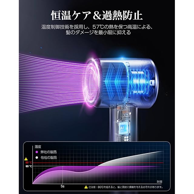 ? 【プロも認める超高速モーターで、ドライ時間を最大60%短縮】BGBの速乾ドライヤーは最新の高速デジタルモーターを搭載し、従来のヘアドライヤーを凌ぐ風量を実現!髪を素早く乾かすだけでなく、スタイリング時間も大幅に短縮。忙しい朝や急いでいる時にも、プロのような仕上がりを簡単に実現できます。