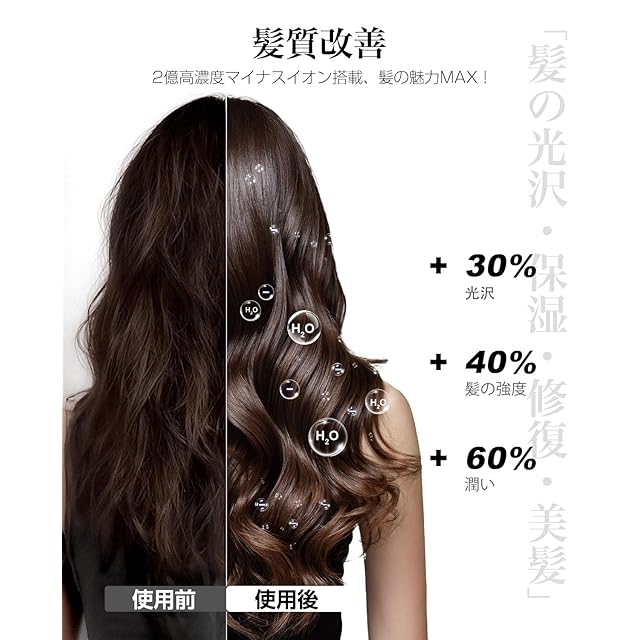 ?【2億高濃度マイナスイオンでツヤとサラサラ感を徹底サポート】マイナスイオン技術が髪の静電気や絡みつきを防止し、ツヤとサラサラ感をキープ!!毎日の使用で髪のダメージを軽減し、健康的な美しい髪へと導きます。