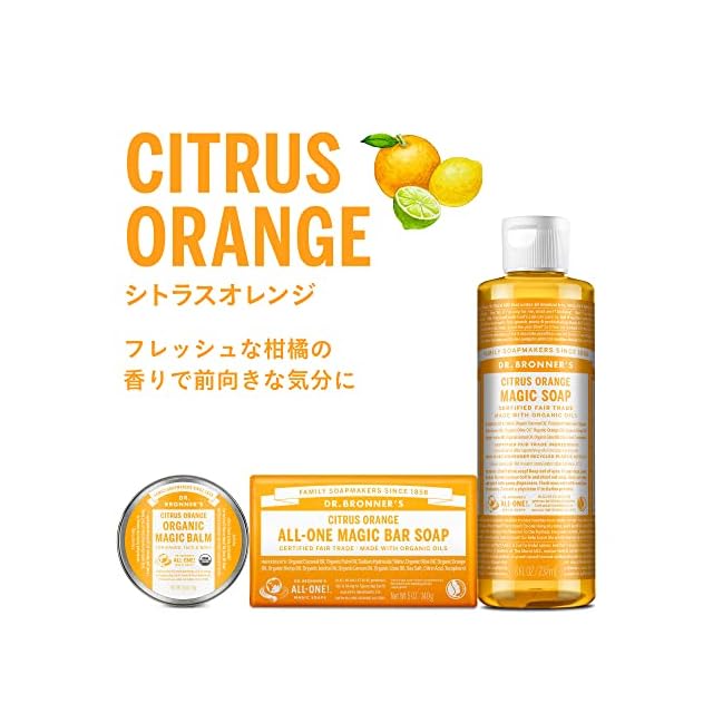 商品名:ドクターブロナー マジックソープ CI(シトラスオレンジ) 237ml フレッシュな柑橘の香り 植物オイル マルチオーガニックソープ