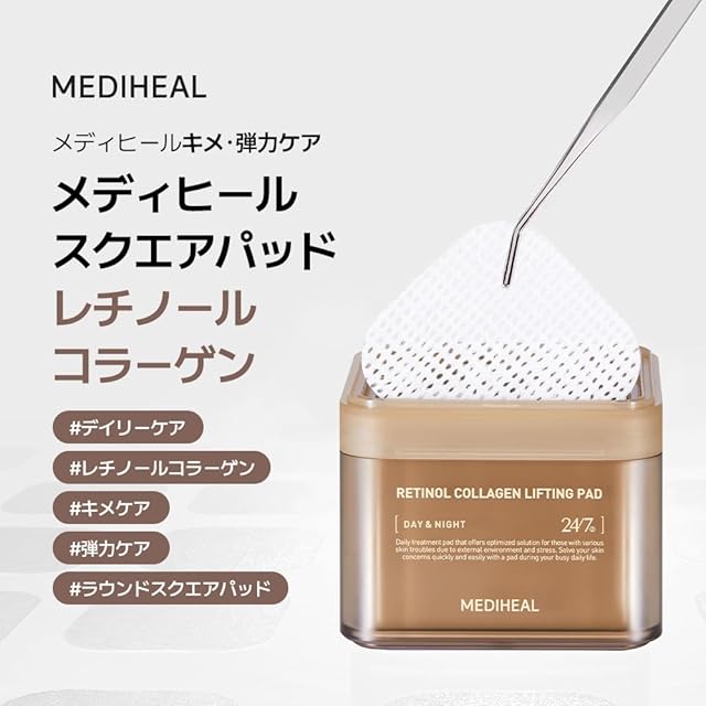 メディヒールスクエアトナーパッド(レチノール) ハリ不足の肌のお悩み 伸縮性のあるメッシュ素材パッド